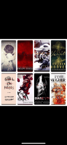 Books: The Uninvited. Red Sea Rules. Girl in Pieces. Ryan’s Bed. Teardrop Shot. Kill Switch. Verity. F*ck Love, Dare Me.
